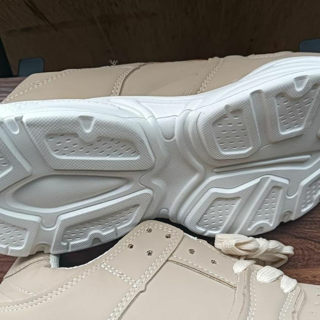 新品 25cm レディース スニーカー ベージュ シューズ 靴 厚底 カジュアル 男女兼用