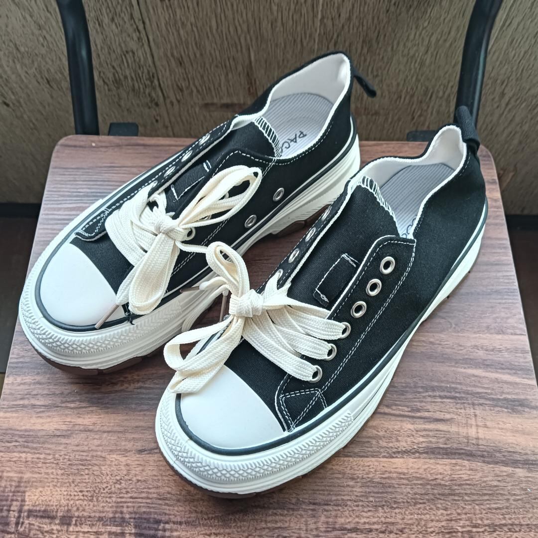 新品 24.5cm レディース スニーカー ブラック ホワイト 厚底 シューズ