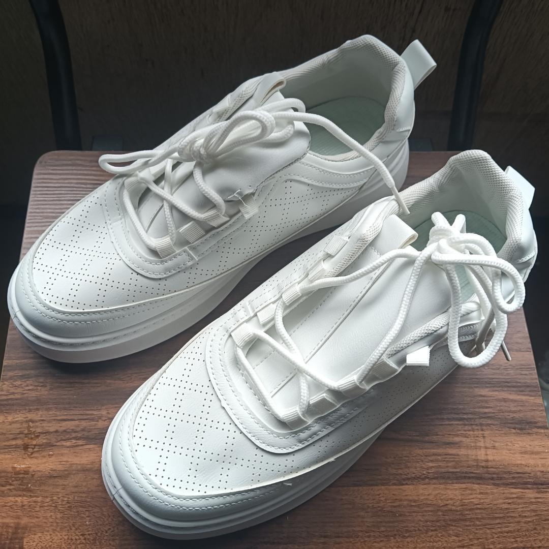 新品 26cm メンズ スニーカー ホワイト 厚底 シューズ 普段着