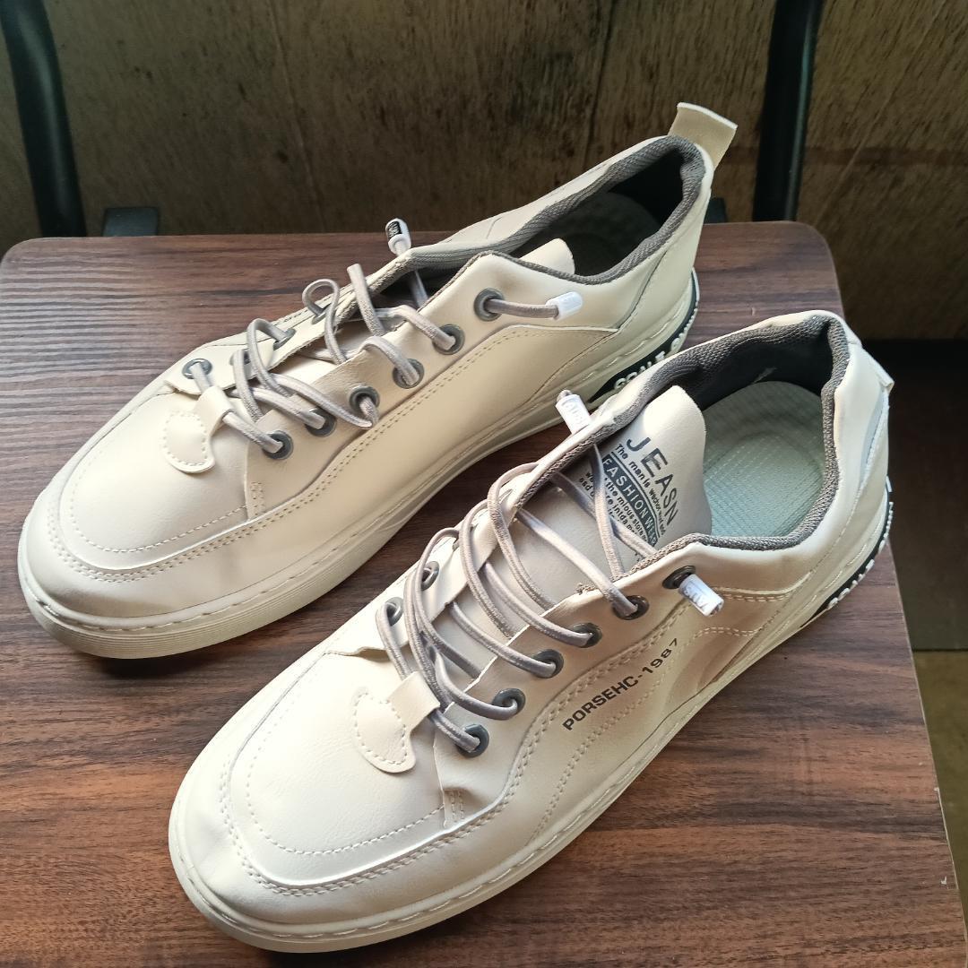 新品 25cm メンズ スニーカー ベージュ 厚底 男女兼用 シューズ