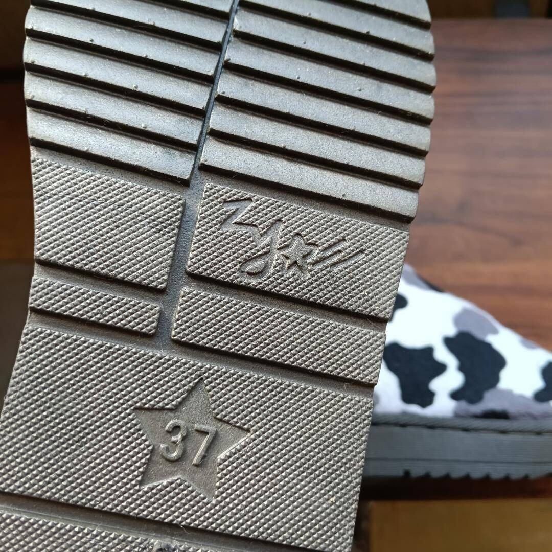 新品 カウ柄 ショートブーツ ムートン レディース シューズ 靴 23.5cm