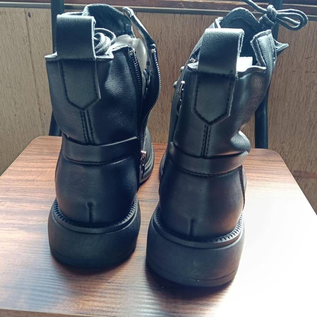新品 23cm レディース ブーツ ブラック 厚底 シューズ ショートブーツ