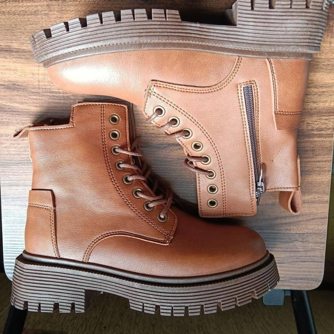 新品 22.5cm レディース ブーツ ブラウン 厚底 シューズ ショートブーツ