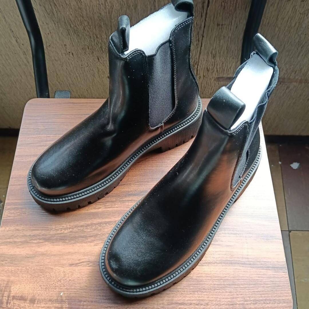 新品 23cm レディース ブーツ ブラック 厚底 シューズ ショートブーツ