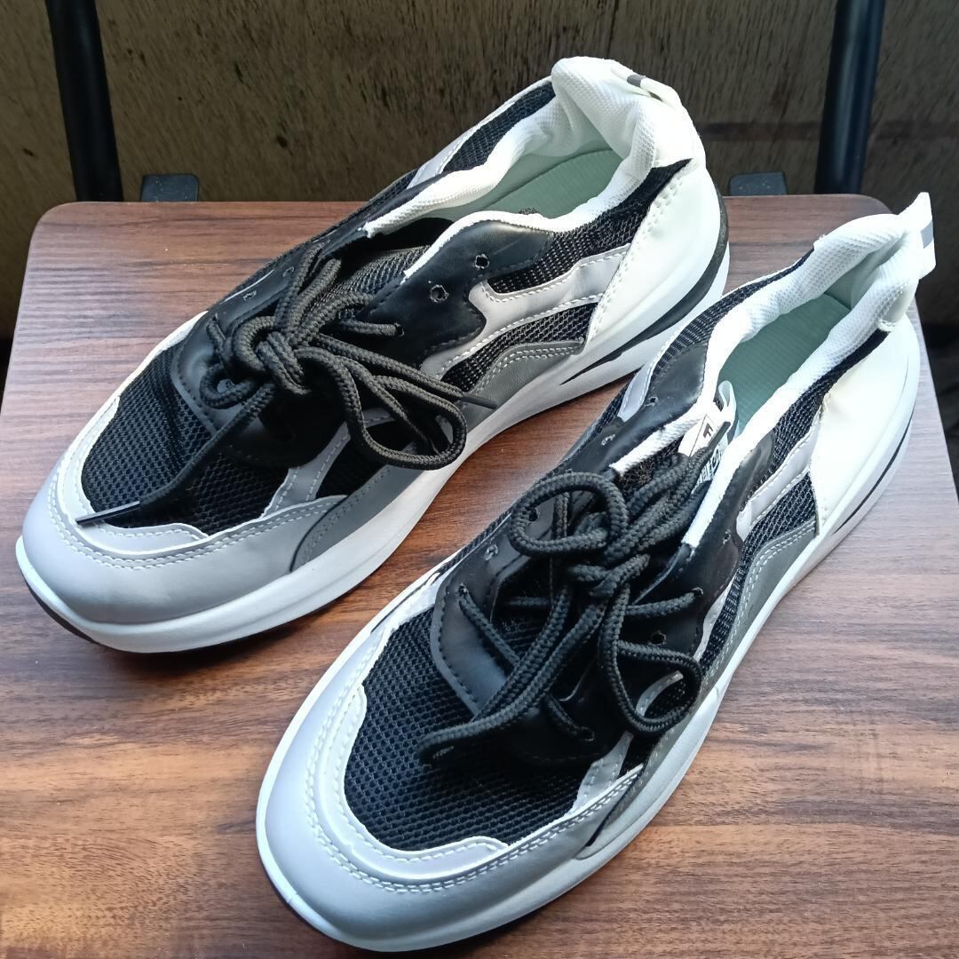 新品 25cm メンズ スニーカー ブラック 厚底 男女兼用 シューズ