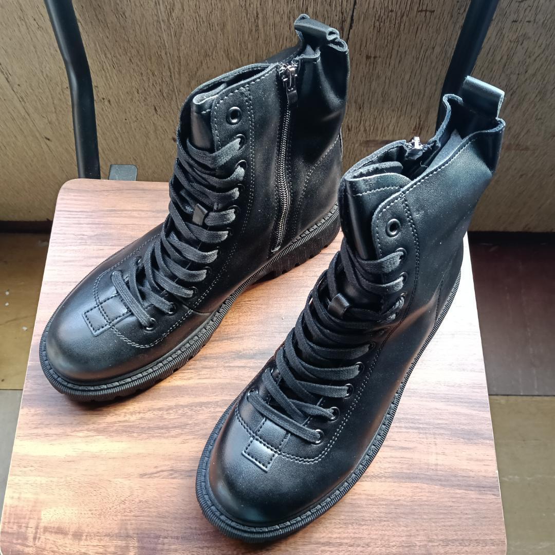 新品 24.5cm レディース ブーツ ブラック 厚底 シューズ 普段着