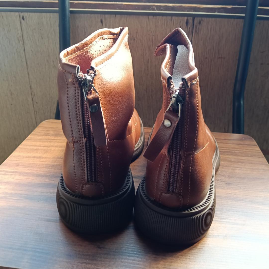新品 23cm レディース ブーツ ブラウン 厚底 シューズ サイドゴア