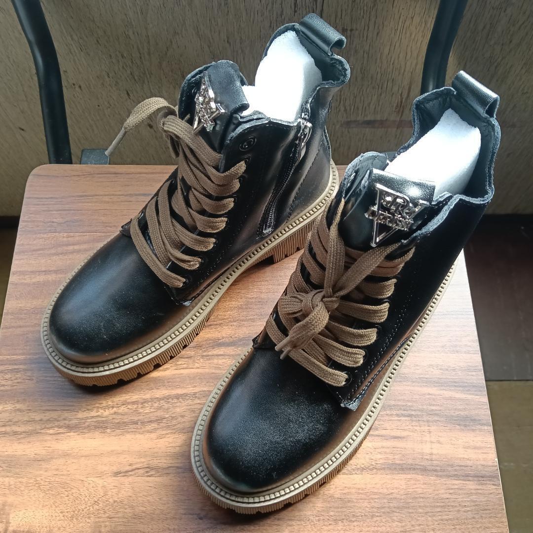 新品 22.5cm レディース ブーツ ブラック 厚底 シューズ サイドゴア