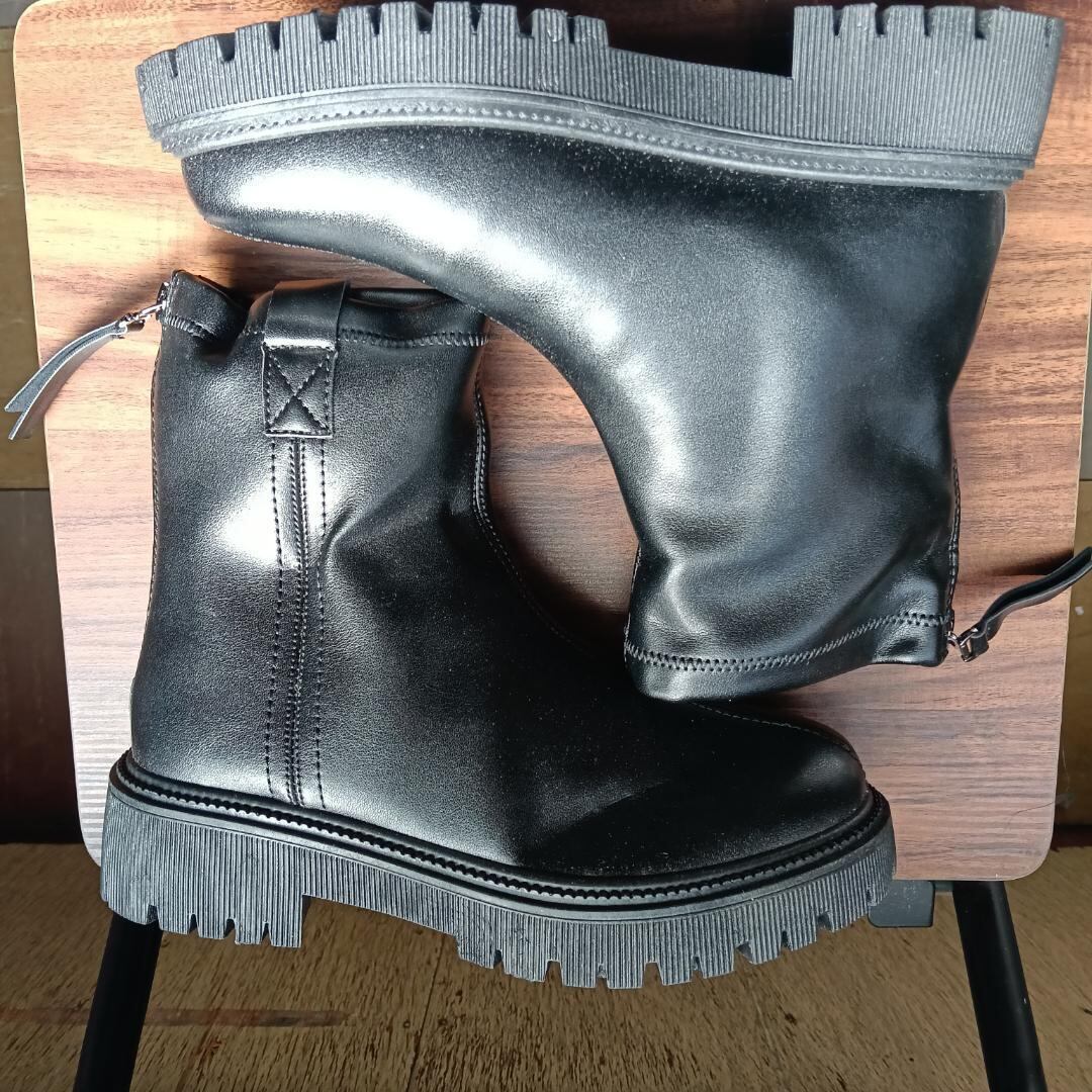 新品 22.5cm レディース ブーツ ブラック 厚底 シューズ サイドゴア