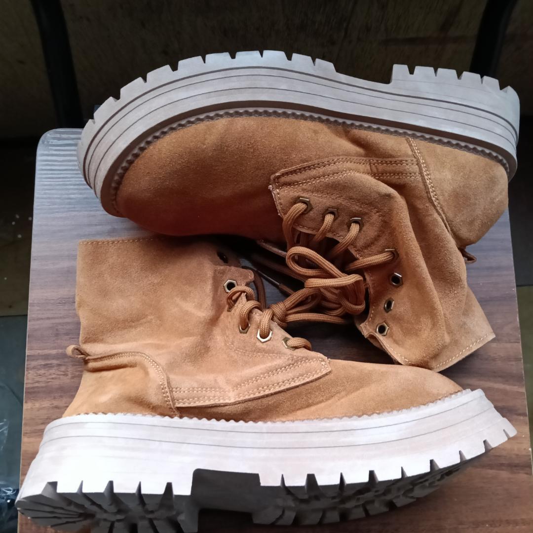 新品 24cm レディース ブーツ ブラウン 厚底 シューズ サイドゴア