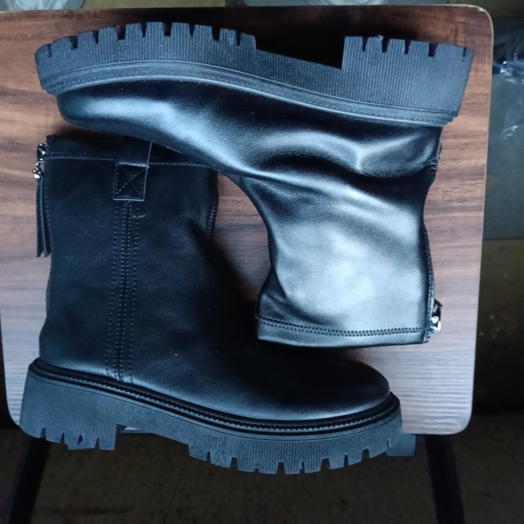 新品 22.5cm レディース ブーツ ブラック 厚底 シューズ サイドゴア