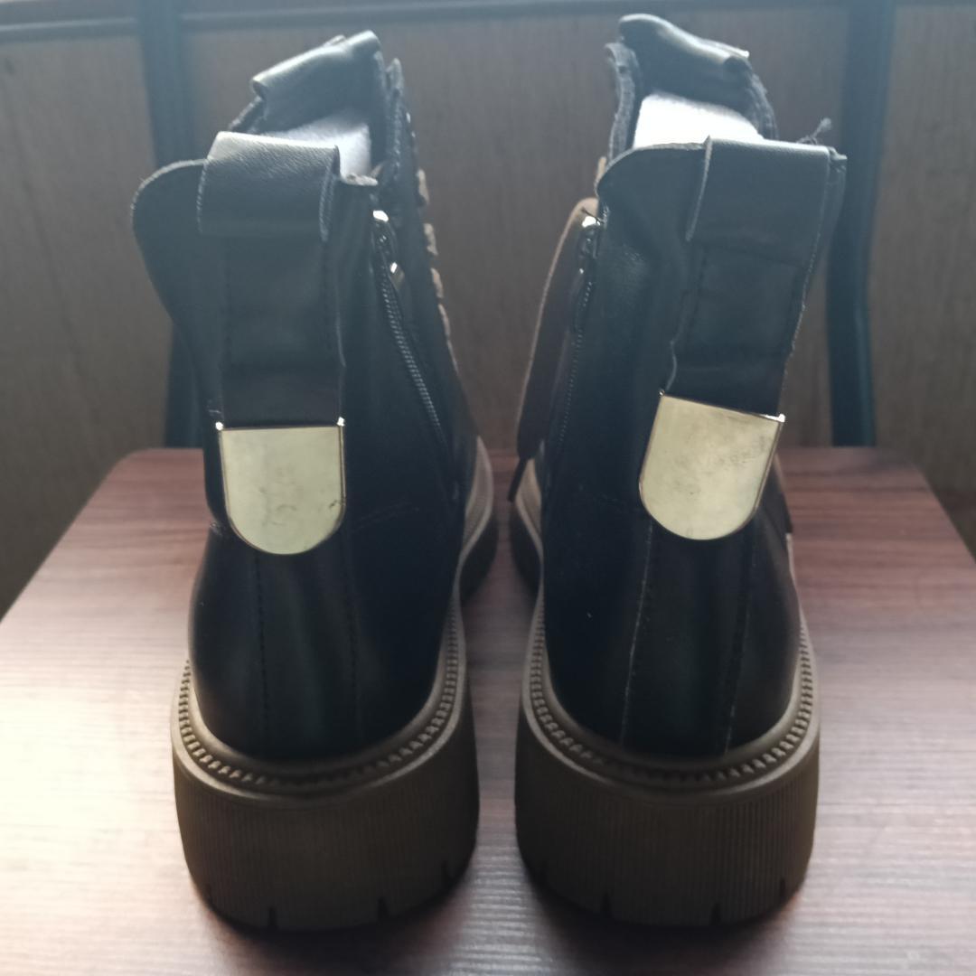 新品 23cm レディース ブーツ ブラック 厚底 シューズ サイドゴア