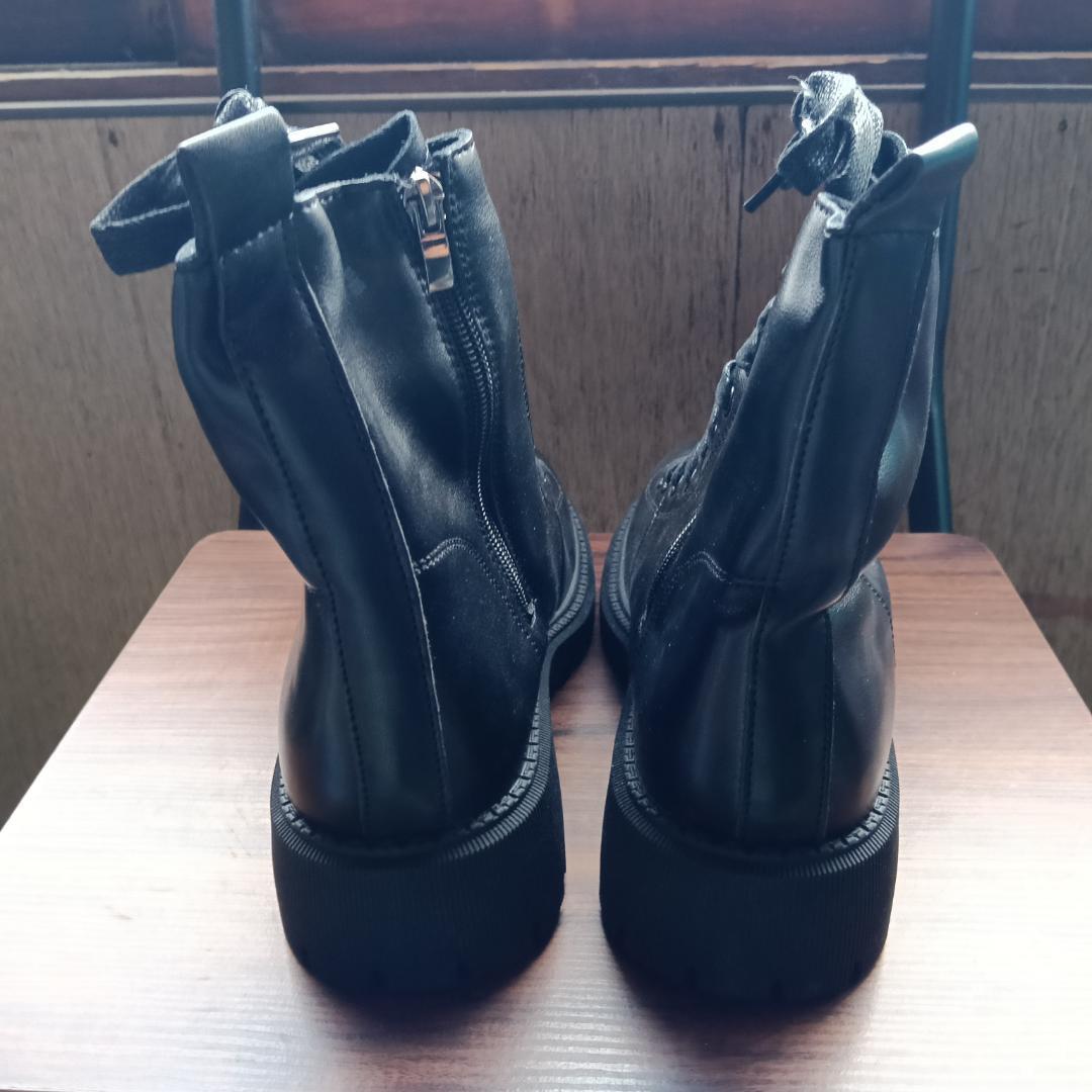 新品 24.5cm レディース ブーツ ブラック 厚底 シューズ ショートブーツ