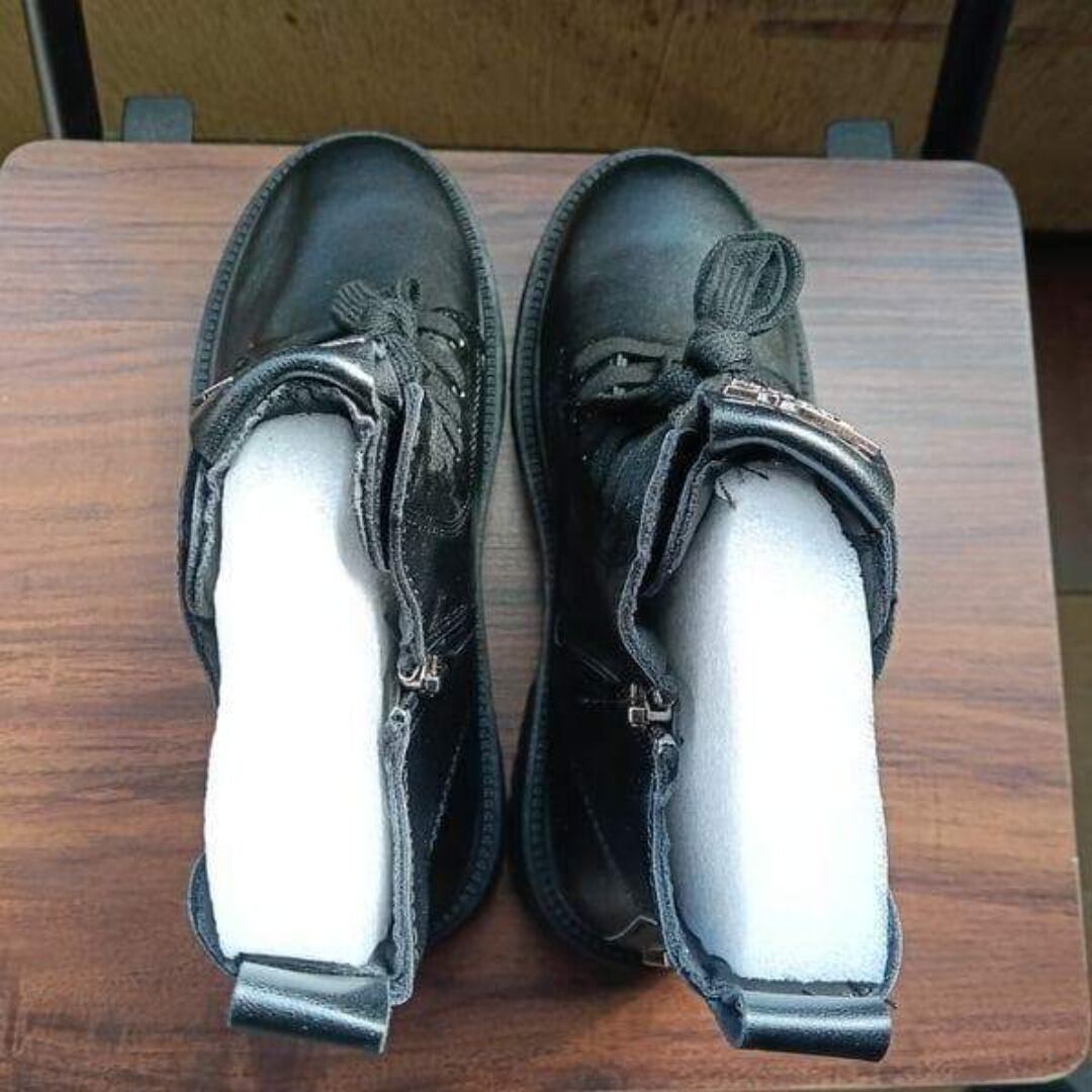 新品 22.5cm レディース ブーツ ブラック 厚底 シューズ ショートブーツ