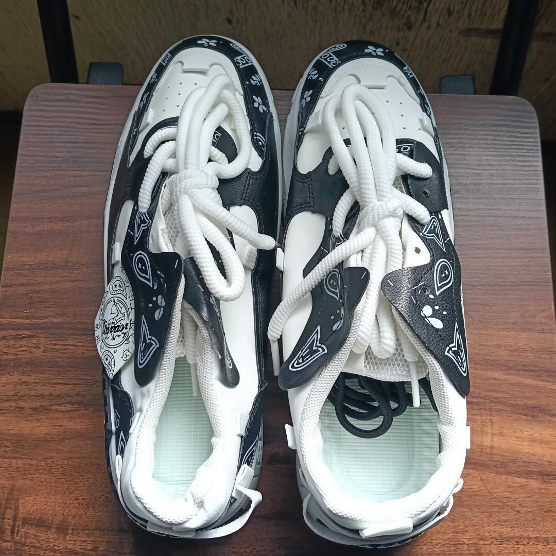 新品 27cm メンズ 靴 スニーカー ホワイト ブラック 厚底 シューズ