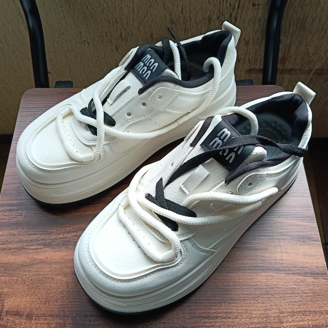 新品 25cm レディース 靴 スニーカー ホワイト 厚底 男女兼用 シューズ