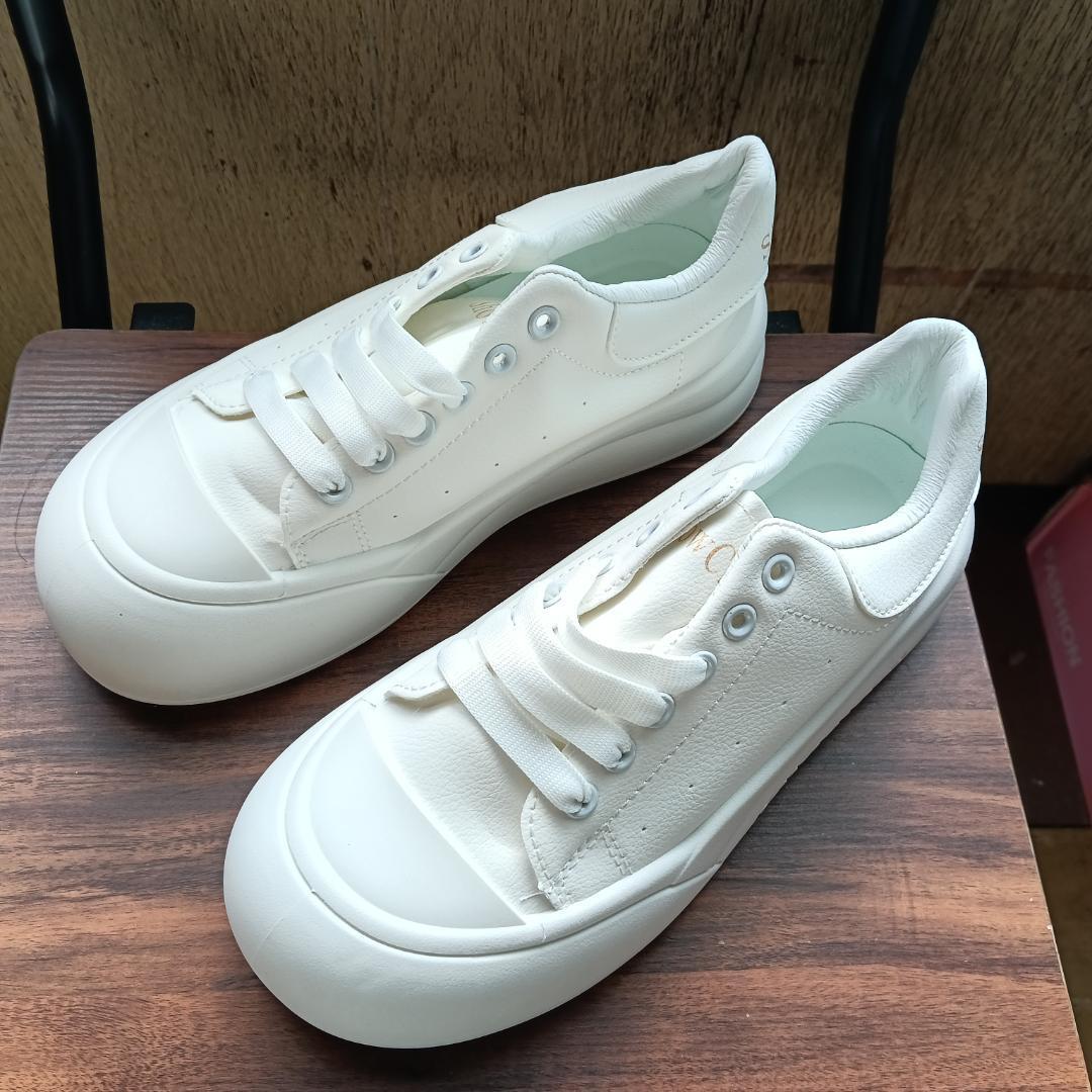 新品 25cm レディース 靴 スニーカー ホワイト 厚底 男女兼用 シューズ