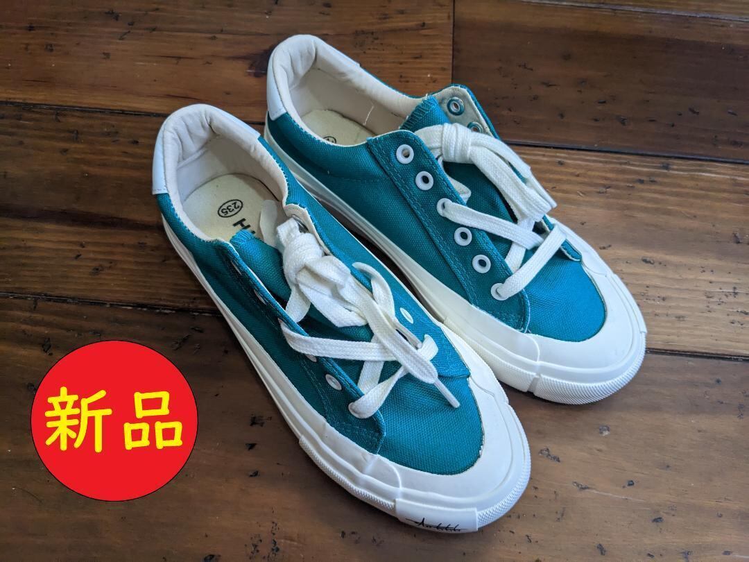 新品 ローカット スニーカー レディース ブルー シューズ 23.5cm 男女兼用
