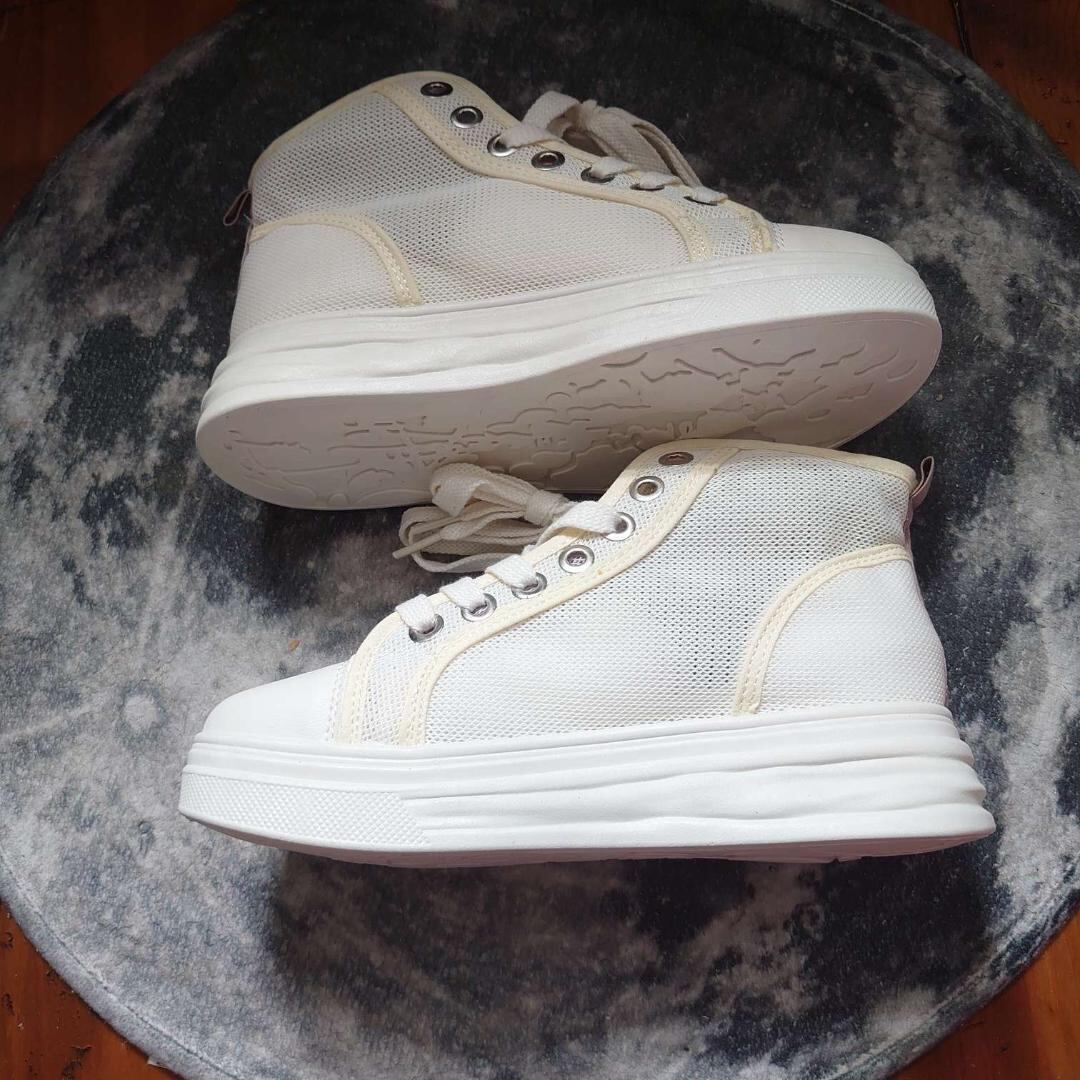 新品 レディース ミドルカット スニーカー ホワイト 白色 23.5cm