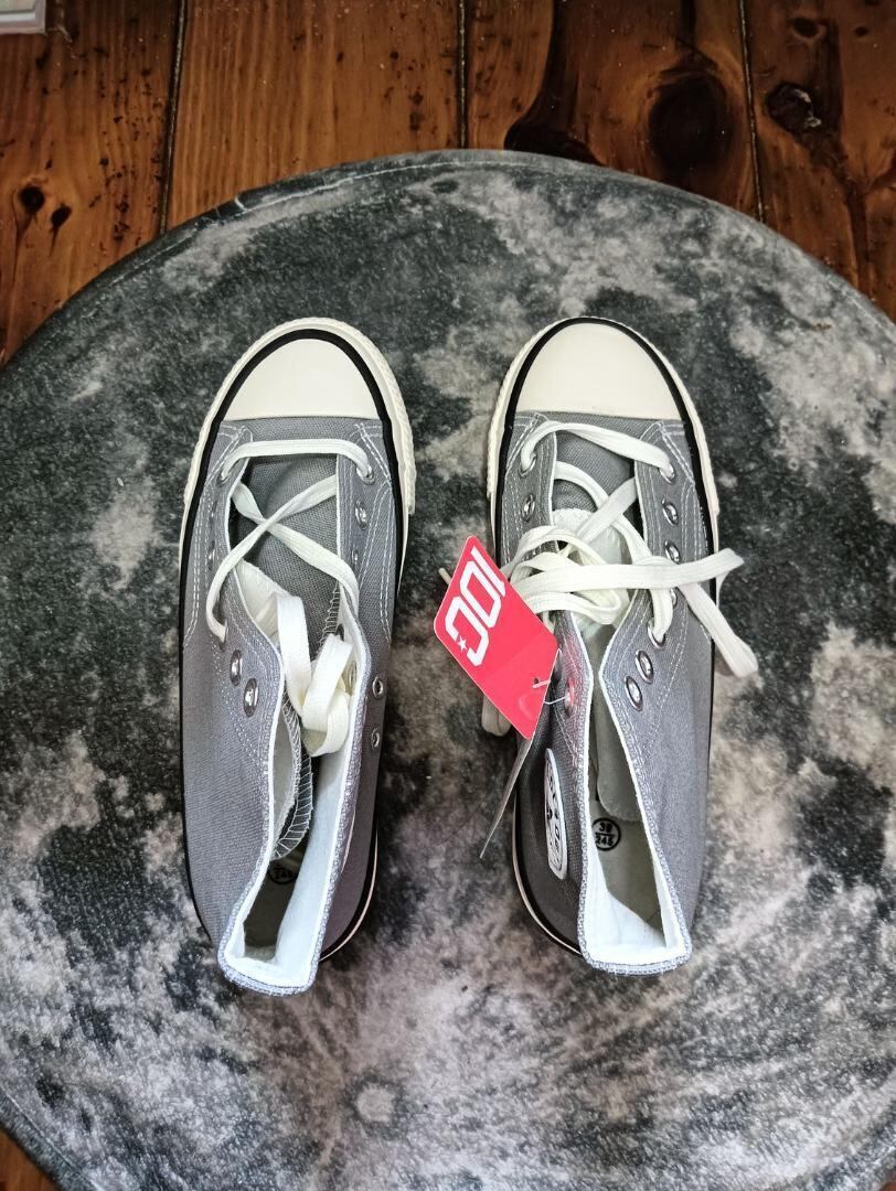 新品 24.5cm レディース スニーカー グレー シューズ 靴 ミドルカット 男女兼用